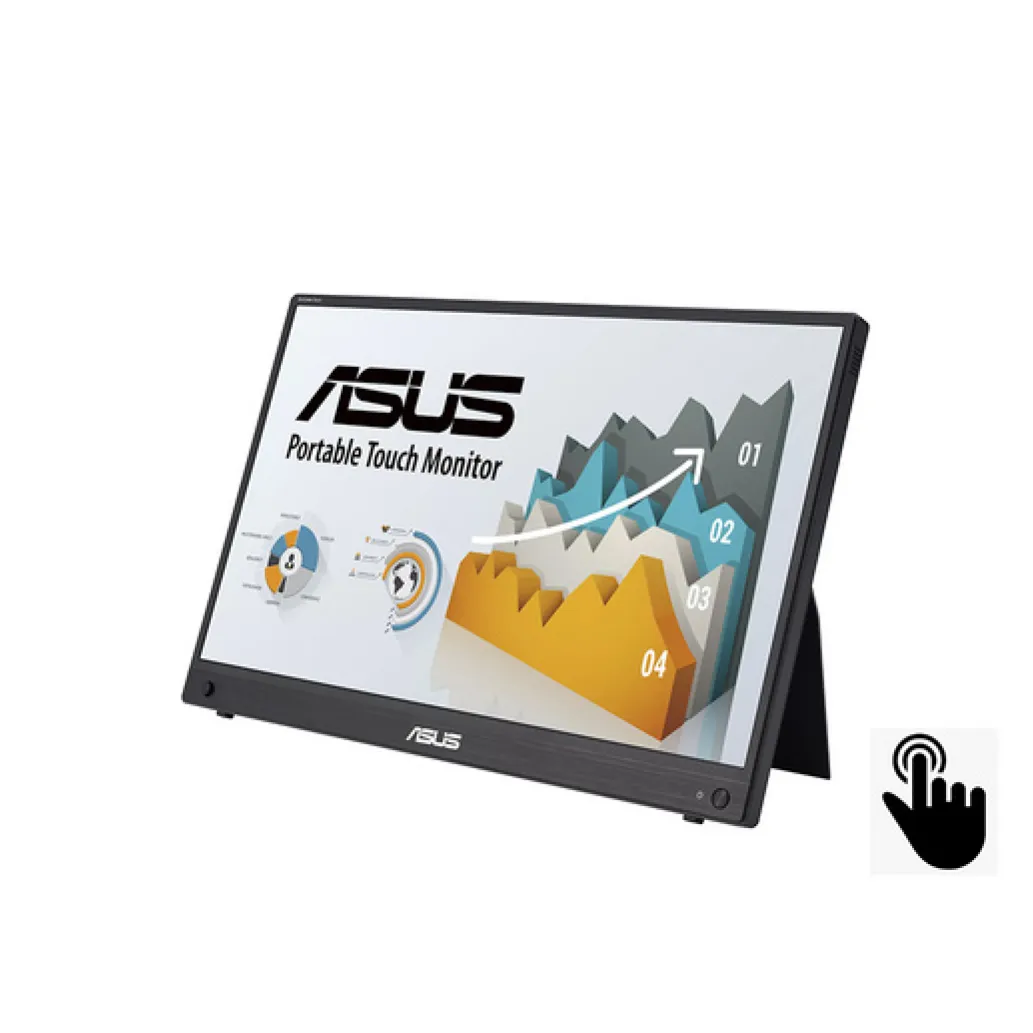Monitor Asus 39,6 cm (15,6″) MB16AHT 1920×1080 60Hz IPS 5ms Mini-HDMI 2xUSB-C Touch 10-točkovni Zvočniki ZenScreen ergo nastavek za stojalo