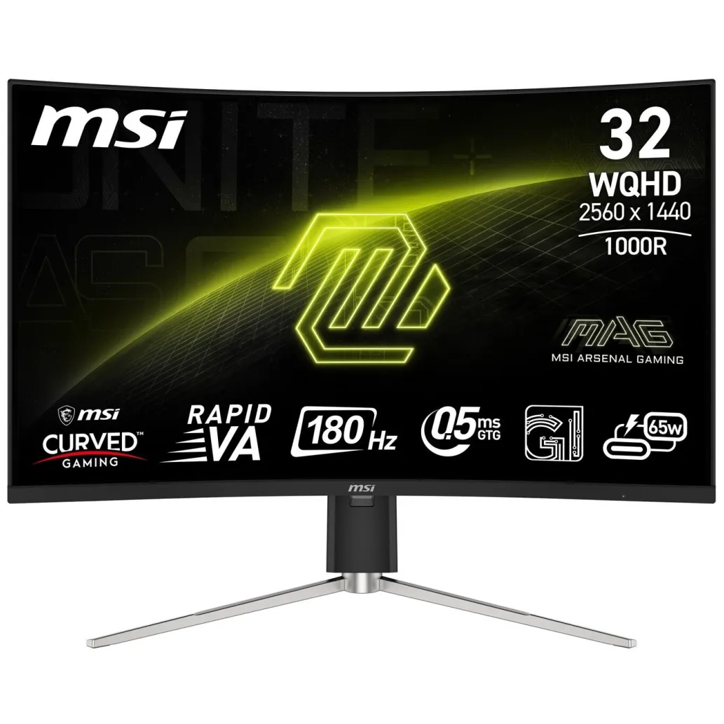 Monitor MSI 80 cm (31,5″) 325CQRFDE QD E2 2560×1440 Curved Gaming 180Hz VA 0,5ms 2xHDMI DisplayPort USB-C 65W 2xUSB2.0 HAS DCI-P3-94% AdaptiveSync HDR MAG