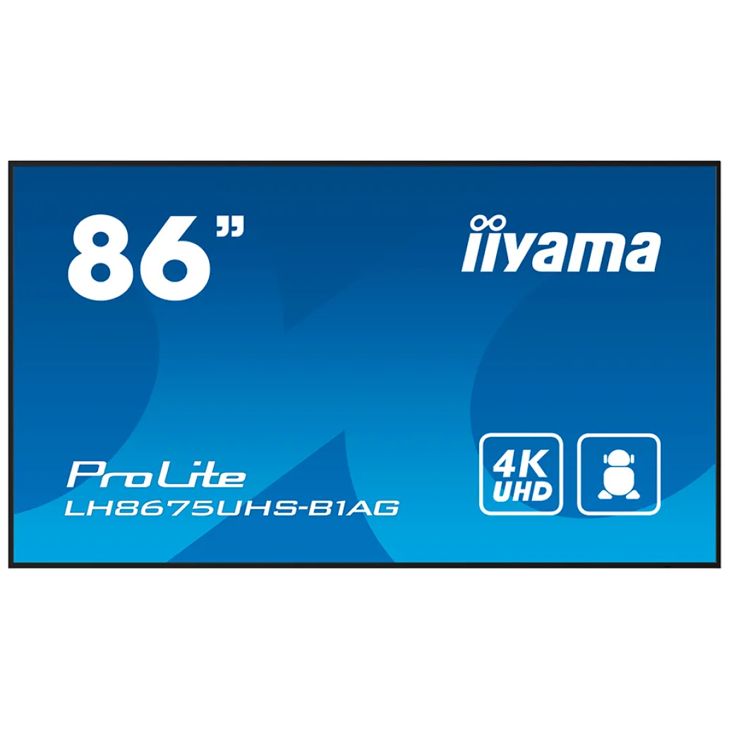Prikazovalnik LED IIyama 218 cm (86,0″) LH8675UHS-B1AG 3840×2160 60Hz IPS 3xHDMI DisplayPort WiFi RJ45 RS232-In-Out 2xUSB2.0 IR zvočniki 2x10W NTSC72% 1400:1 500 cd/m2 Android OS 11