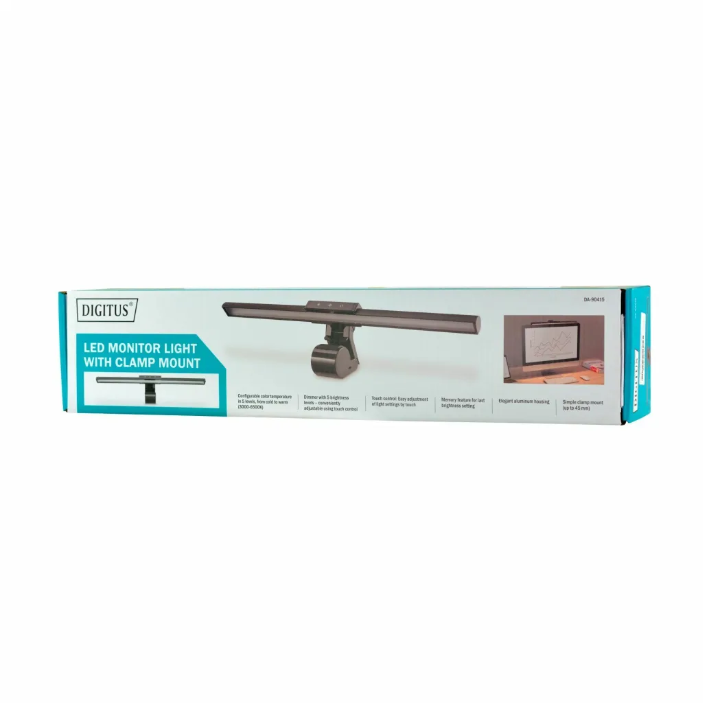 LED svetilka za pritrditev na monitor DIGITUS zagotavlja prave svetlobne pogoje v vseh situacijah. Izbirajte med hladno delovno svetlobo ali toplo udobno svetlobo v različnih stopnjah svetlosti – vse je priročno nastavljivo z upravljanjem na dotik.